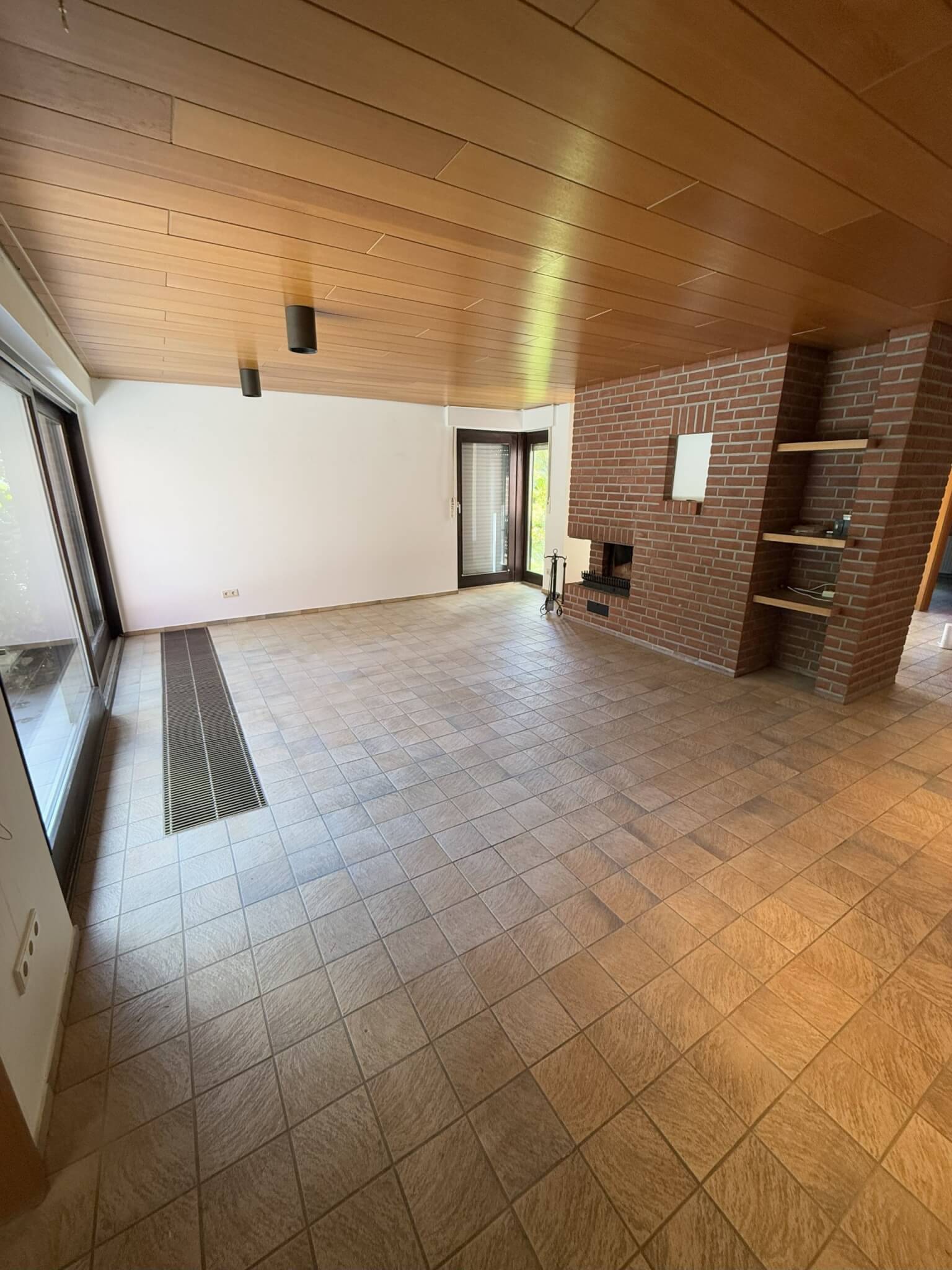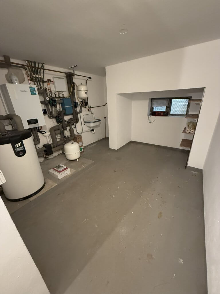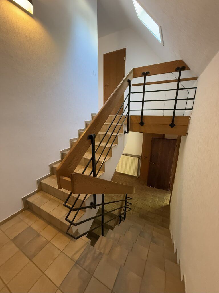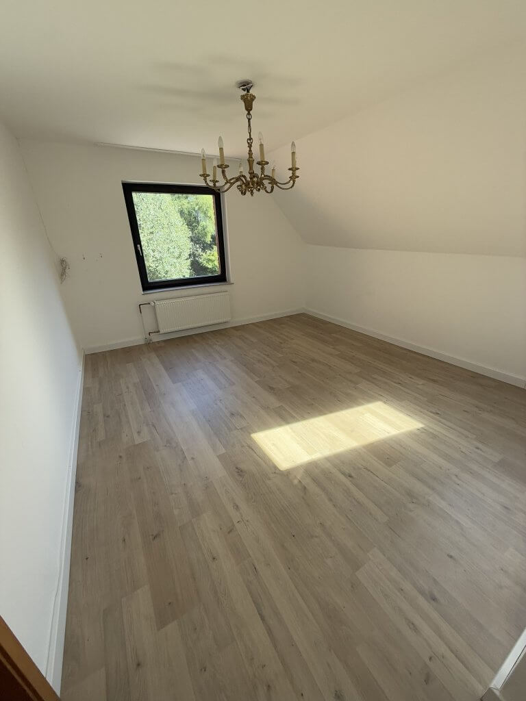 Im Obergeschoss wurde im Jahr 2022 ein hochwertiger, moderner Laminatboden verlegt, der den Räumen eine warme und gepflegte Atmosphäre verleiht. Der großzügige Wohn- und Essbereich ist mit Fliesen ausgestattet und überzeugt durch seine Helligkeit und Offenheit. Ein besonderes Highlight ist der hochwertige, gemauerte Kamin im Wohnzimmer, der nicht nur für behagliche Wärme sorgt, sondern auch ein gemütliches Ambiente schafft. Eine funktionale Einbauküche ist bereits vorhanden und bietet alles, was man für den täglichen Komfort benötigt. Sowohl im Wohn- und Essbereich als auch im angrenzenden Zimmer mit Zugang zum Garten sorgen bodentiefe Fenster für eine angenehme Lichtdurchflutung und schaffen ein harmonisches Wohngefühl mit Blick ins Grüne.